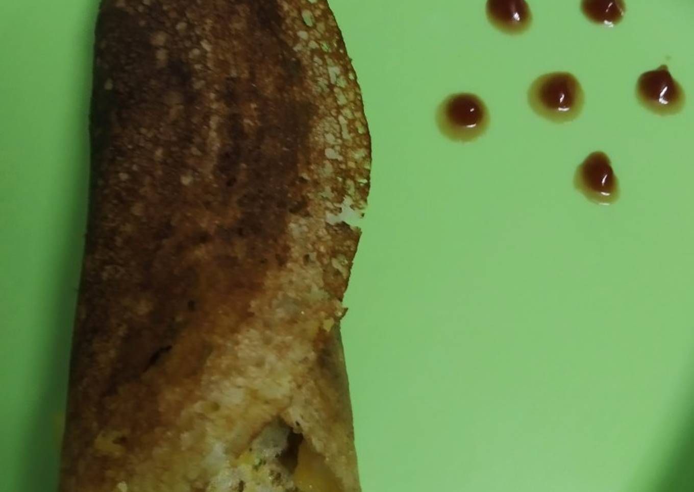- Fold it and serve dosa with sauce or sambhar.