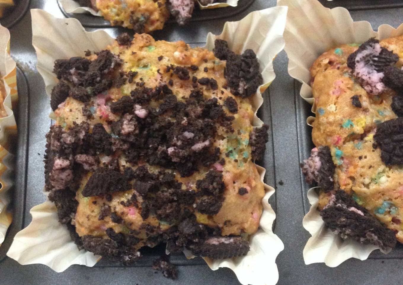 Eggless Funfetti Oreo Muffins