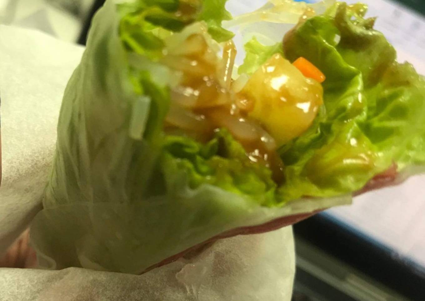 - Place lettuce in the middle of the rice paper and add vermicelli noodles on top. Arrange strips of cucumber, mango, kani/crabsticks, carrots and chopped coriander/mint leaves on top and add mayonnaise or you can put the crabsticks and mango outside the lettuce to make them "peek through" the wrap.